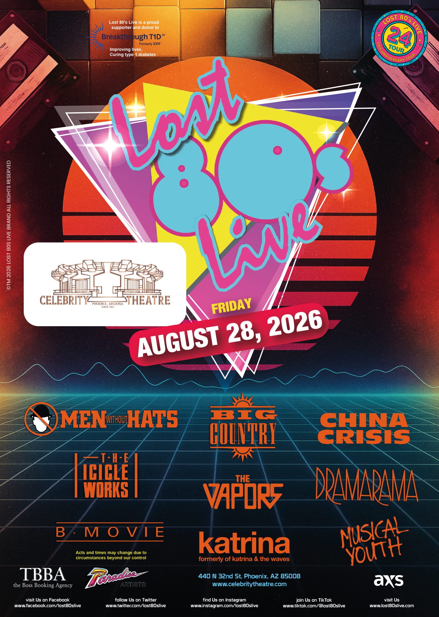 Lost 80's Live Line Up 2026 Coming Soon All of your favorite 80s artists on one stage! Check back for updated dates. Lost 80's Live Line Up 2026 Coming Soon All of your favorite 80s artists on one stage! Check back for updated dates. The Line-Up Men Without Hats Read more Big Country Read more The Vapors Read more The Icicle Works Read more B.Movie Read more China Crisis Read more Katrina Read more Musical Youth Read more Dramarama Read more Richard Blade Read more The Dates